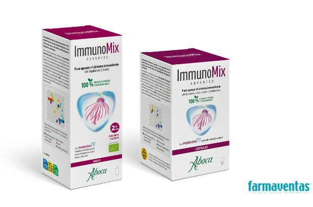 La gama Immunomix consta de 2 presentaciones: un jarabe y cápsulas. Son complementos alimenticios desarrollados y formulados por el sistema integrado de Aboca, único en el mundo, que va del cultivo a la investigación fitoquímica y biológica.
