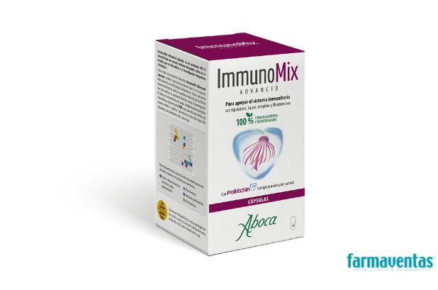 ImmunoMix Cápsulas es un complemento alimenticio con PoliEchin-PF®, un complejo molecular natural con Equinácea, Saúco, Jengibre y Eleuterococo, cuya presencia en la fórmula es útil para apoyar el sistema inmunitario siempre que se encuentre debilitado. No contiene gluten.